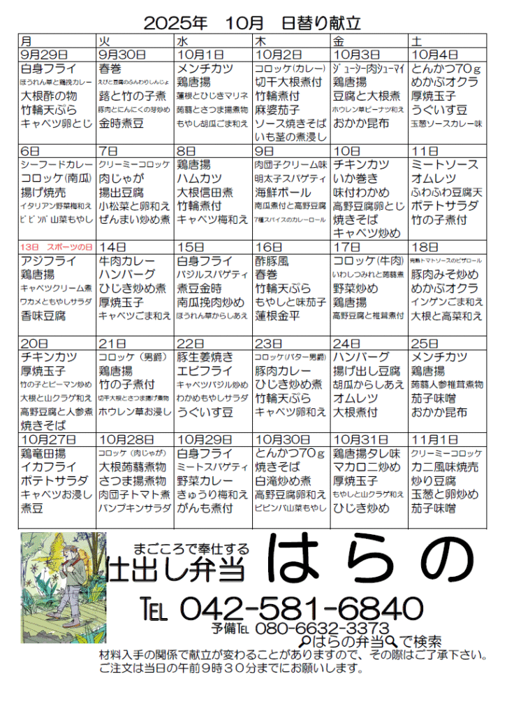 日替わり献立 2025.09.28 2021.01.02 消費税込み 2025-10献立ダウンロード 2025-09献立ダウンロード 2025-08献立ダウンロード 2025-07献立ダウンロード 2025-06献立ダウンロード 2025-05献立ダウンロード 2025-04献立ダウンロード 2025-03献立ダウンロード 2025-01献立ダウンロード 2024-11献立ダウンロード 2024-10献立ダウンロード